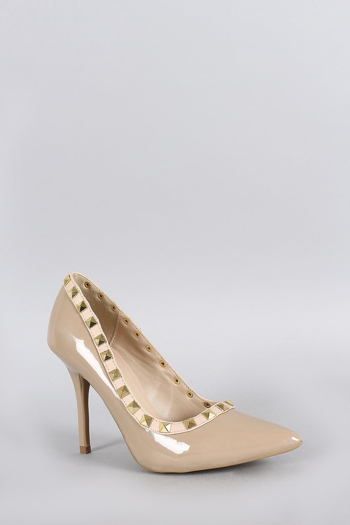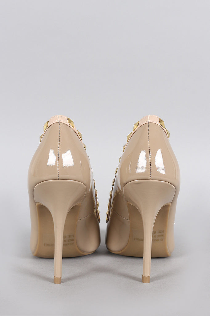 Wild Diva Lounge Patent Pyramid Studded Pointy Toe Pump