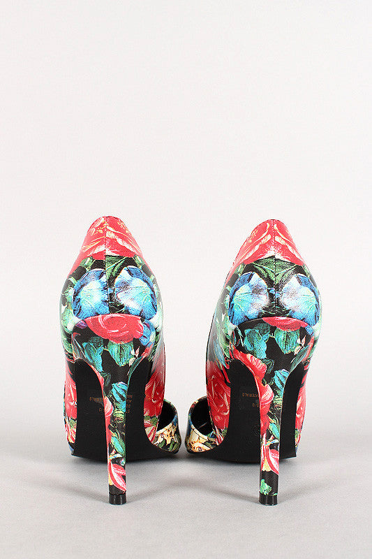 Breckelle Floral Dorsay Pointy Toe Stiletto Pump