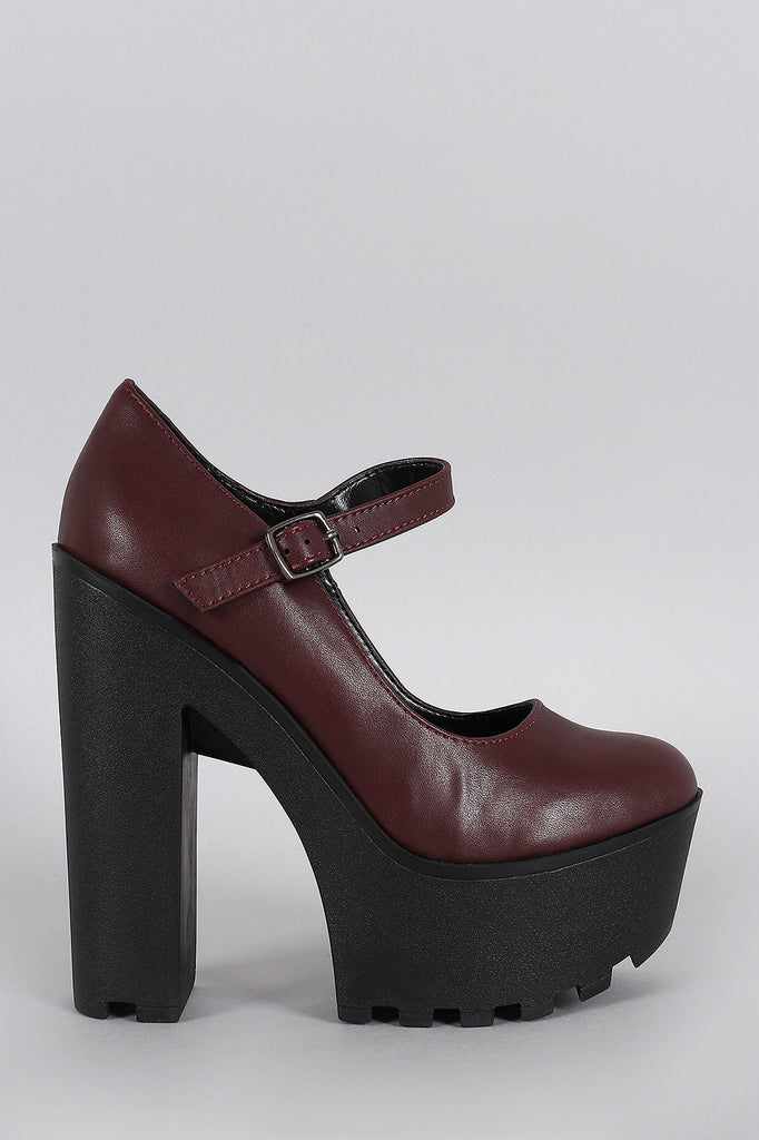 Soda Mary Jane Contrast Lug Sole Platform Pump